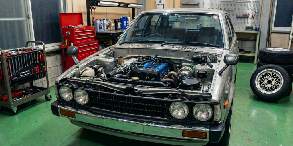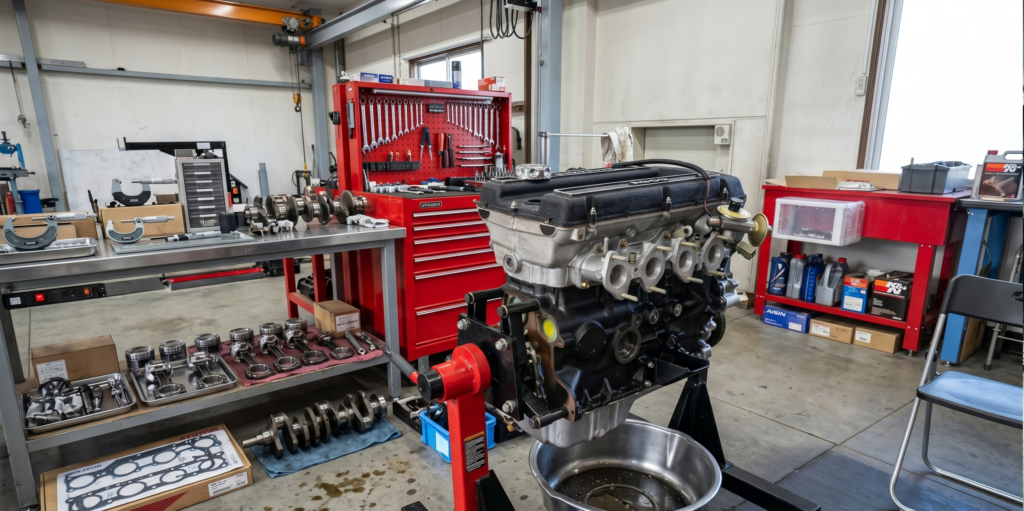 旧車の心臓部を蘇らせる「エンジン・駆動系のオーバーホール」は、まさに職人技の結晶です。その工程を詳しく解説します。まず、エンジンの分解洗浄から始まります。数十年の走行で蓄積した頑固な油汚れ(スラッジ)やカーボンを、専用の洗浄液で徹底的に除去します。その後、精密測定器を用いてシリンダー内部の摩耗や歪みをチェックします。基準値を超えている場合は、ボーリング加工などで金属表面を整え、新車時の気密性を取り戻します。次に、消耗品の交換です。ピストンリング、クランクシャフトを支えるベアリング、各部の気密性を保つガスケット類をすべて新品へ交換します。これにより、オイル漏れや圧縮漏れを防ぎ、エンジンの耐久性を飛躍的に高めます。仕上げはキャブレター調整です。現代の電子制御車とは異なり、気温や湿度に合わせて、ガソリンと空気の混合比を「職人の耳と指先」で微調整します。吸気音や振動の変化を感じ取りながら最適なセッティングを出すことで、旧車特有の鋭いレスポンスと、滑らかなアイドリングを実現します。これらの工程を経て、長年眠っていたエンジンは再び力強い鼓動を刻み始めます。