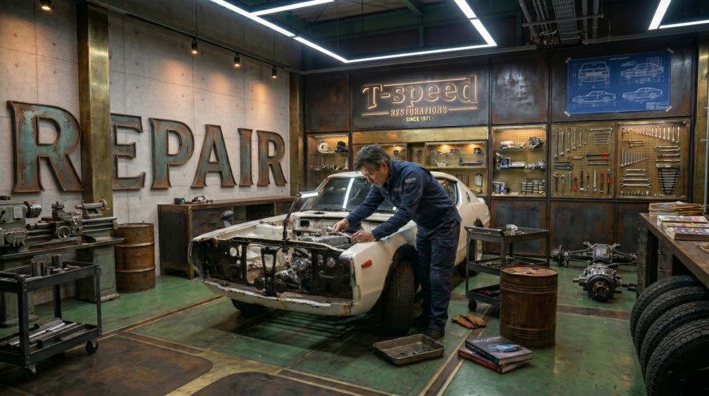 旧車レストアとは、単なる「修理」の域を超え、長い年月を経て朽ちかけた名車を新車時の輝き、あるいはそれ以上の状態へと蘇らせる「再生のプロセス」です。その魅力は、効率優先の現代車にはない独特の造形美や、五感を刺激するダイレクトな操作感を現代に呼び戻すことにあります。レストアの工程は多岐にわたります。まず車体をネジ一本まで分解する「フルストリップ」を行い、隠れたサビや腐食を徹底的に排除するボディワーク。エンジンの摩耗した内部パーツを刷新し、職人の手で精密に組み上げるオーバーホール。そして、劣化して火災の原因にもなる配線類を引き直す電装系のリフレッシュ。これら全ての工程において、当時の意匠を尊重しつつ、現代の高品質な塗料や素材を用いることで、耐久性と信頼性を引き上げます。近年では、単なる復元に留まらず、パワーステアリングや最新の空調、LED照明などを組み込むという手法も人気です。これにより、クラシックな外観を楽しみつつ、現代の交通事情でもストレスなく走れる「実用性」を両立させることが可能になります。膨大な時間と情熱、そして高度な技術を要するレストア。それは、過去のエンジニアたちが込めた想いを未来へと繋ぐ、極めて贅沢で文化的な挑戦なのです。